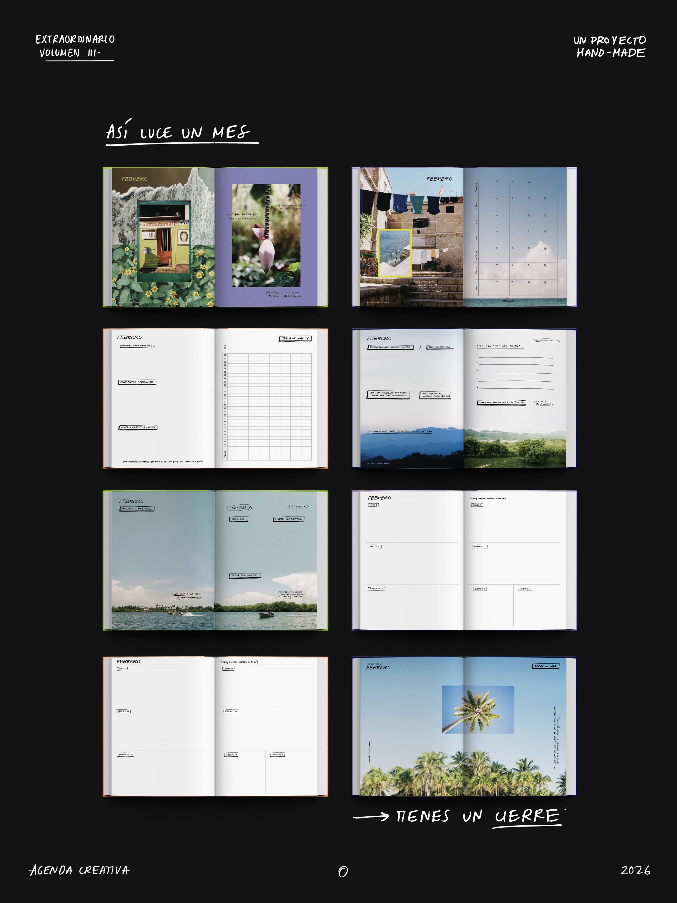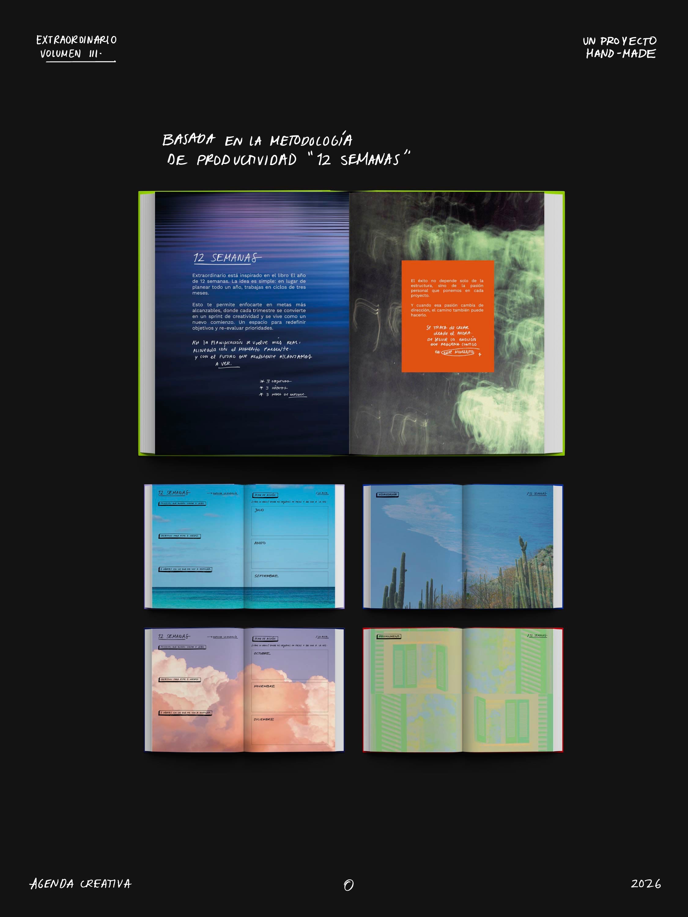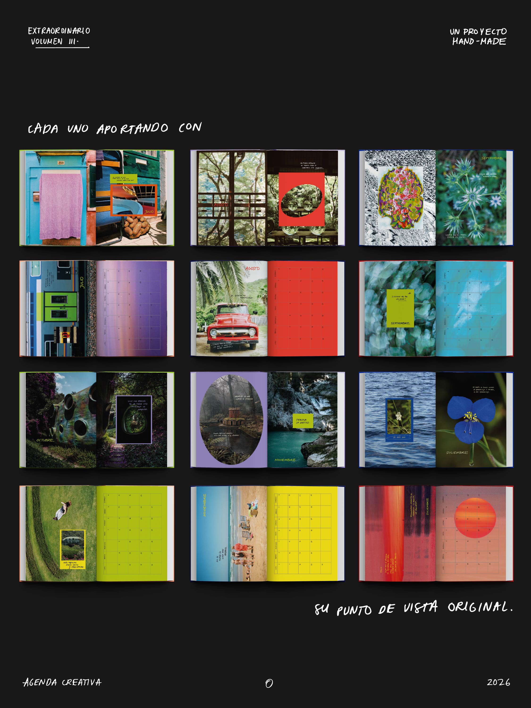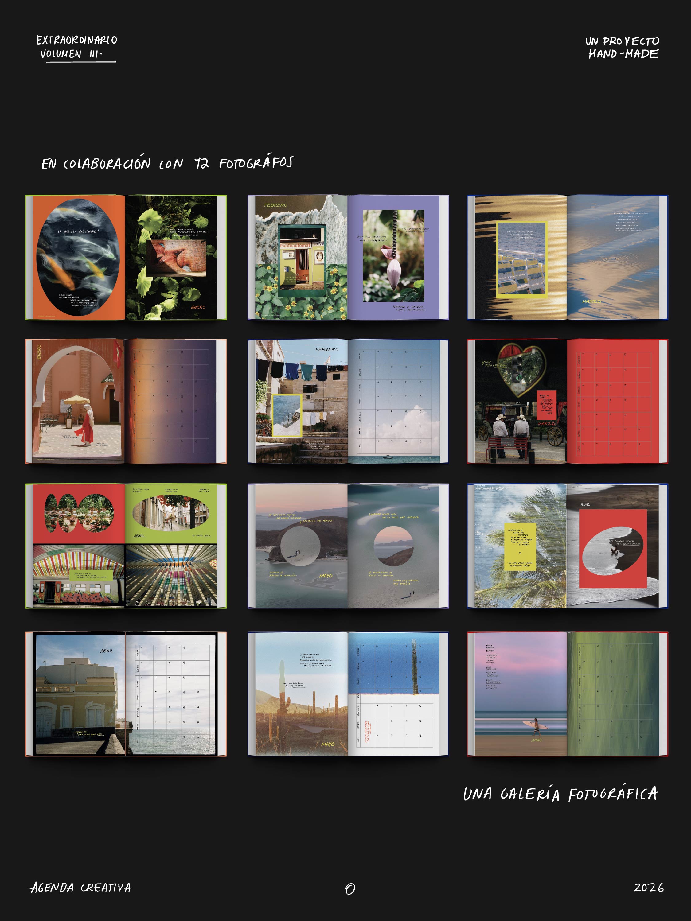 Extraordinario Vol. III es una agenda hecha a mano que reúne el trabajo de 12 fotógrafos, y cada uno, desde su punto de vista original, aporta para construir este volumen tan extraordinario.